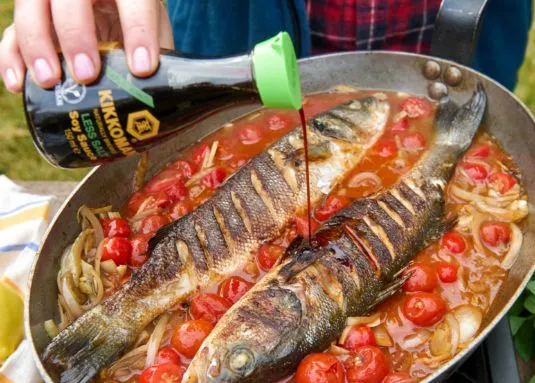 - Kikkoman Sojasaus voegt diepte, umami en een zoute, lichtzoete smaak toe.