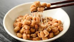 Natto is een traditioneel Japans levensmiddel, dat gemaakt wordt van gekookte en gefermenteerde sojabonen. Door het fermenteren ontstaan draden tussen de bonen en ontwikkelen ze hun in eerste instantie zoete en later geroosterde geur. Natto wordt zowel als bijlage maar ook als ingrediënt gebruikt en hem wordt zelfs een antibacteriële werking toegedicht.