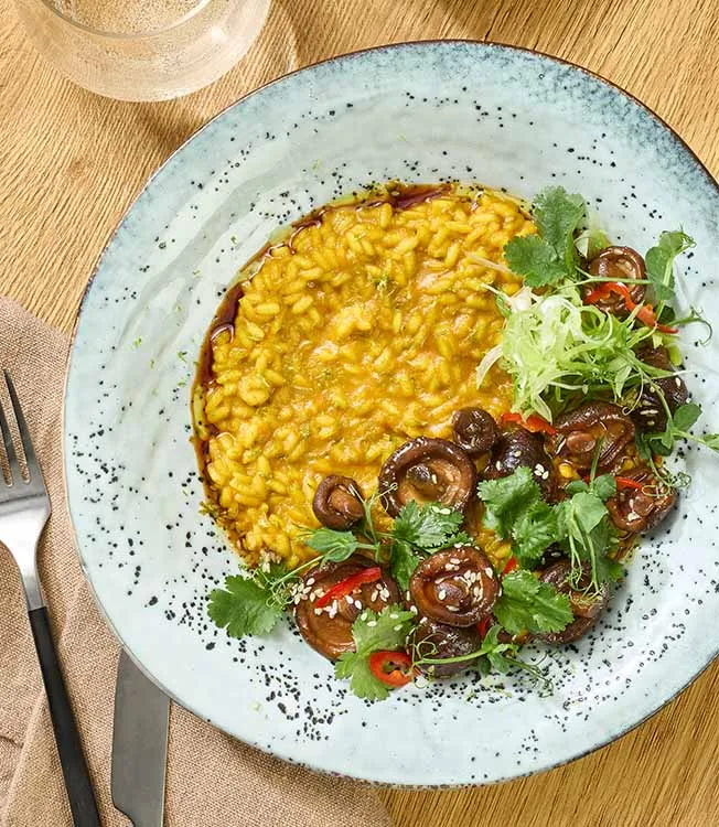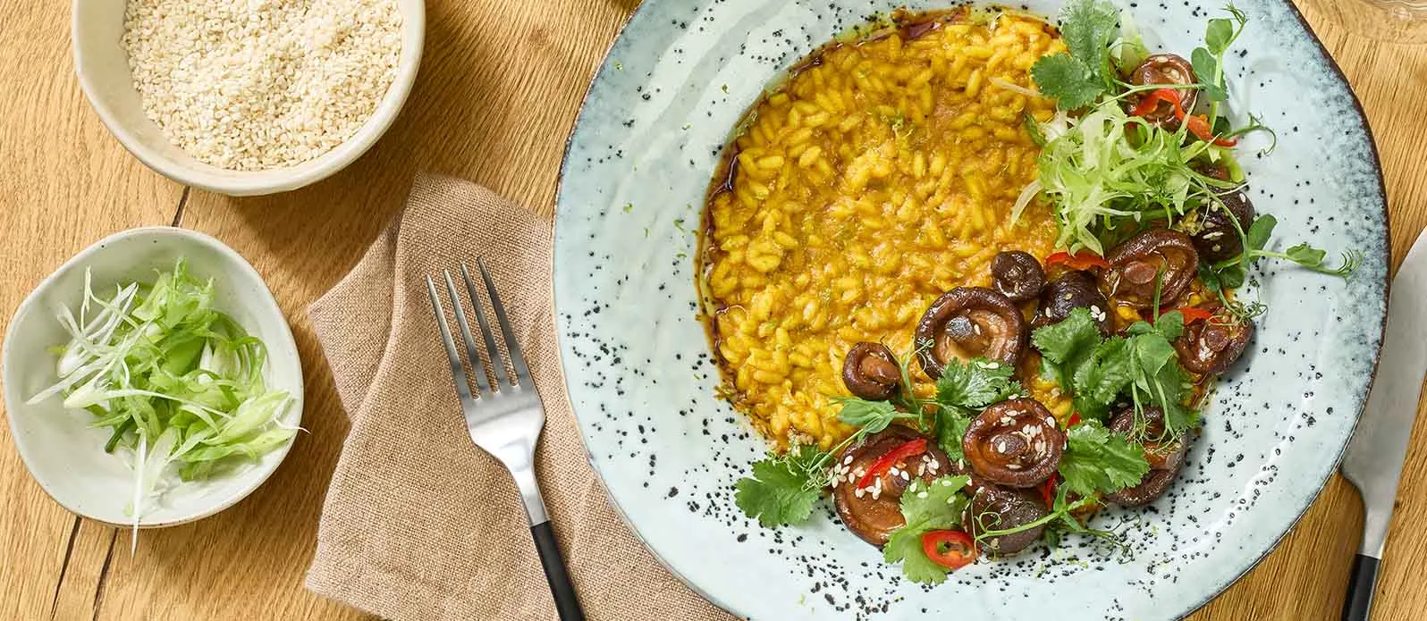 Risotto met shiitake en chili, ook wel ‘gouden melk’ genoemd