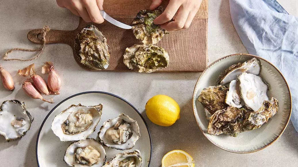 Open de oesters met een oestermes of vraag je visboer om dit te doen. Wees heel voorzichtig en pas op je hand.