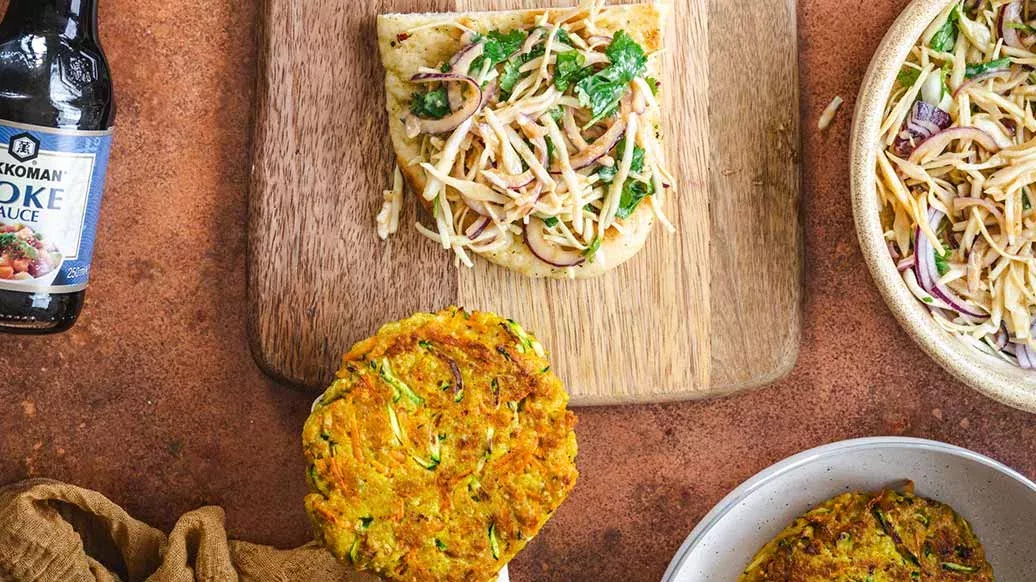 Probeer eens een hamburger met een Indisch tintje. Deze burger heeft een unieke textuur en is een gezonde twist met gierst, wortel en courgette, terwijl de salade met een kruidige mix van Kikkoman Poke Saus, yoghurt en curry een voorproefje geeft van de levendige straten van Mumbai!
