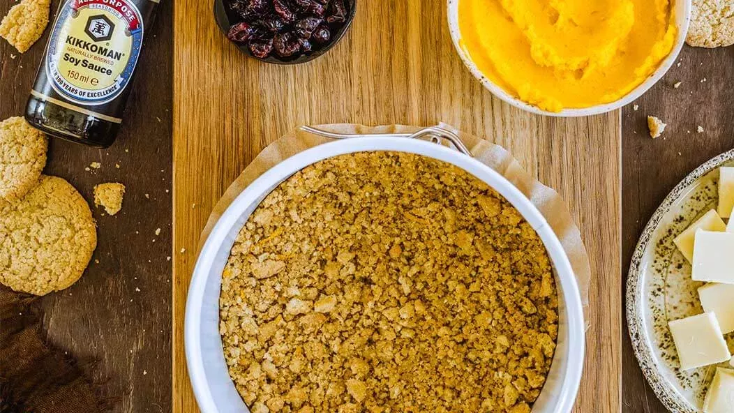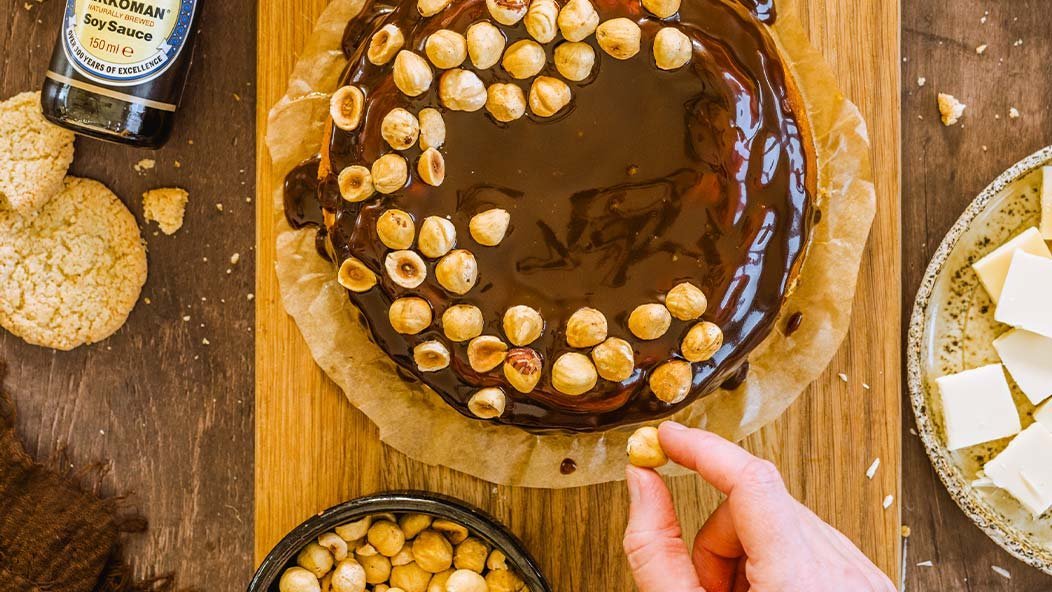 Fluffy pompoencheesecake op een volkoren koekjesbodem combineert heerlijk met karamel. De delicate zoute toets wordt bereikt door een magisch ingrediënt: sojasaus. Knapperige hazelnoten voegen een intensere smaak en een interessante textuur toe.