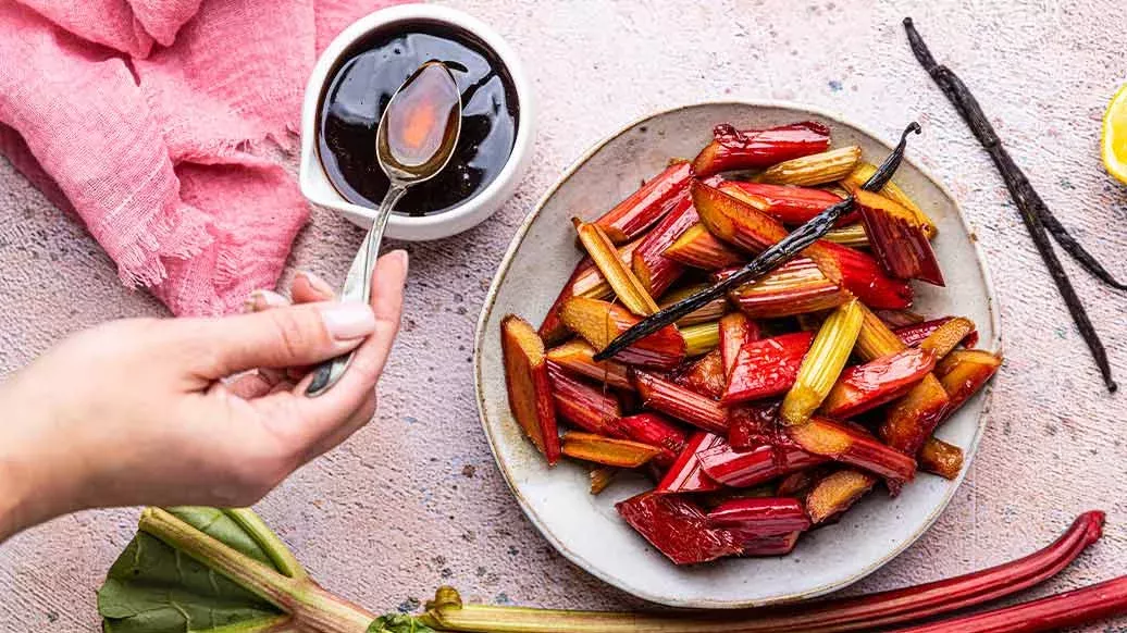 Kook ongeveer 5 minuten. Haal de rabarberstukjes uit de pan en laat afkoelen.