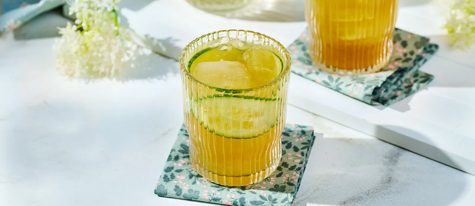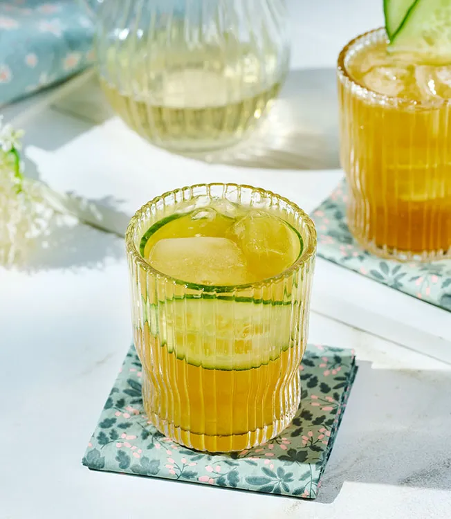 Een verfrissende cocktail met bloemige noten, verse komkommer en een vleugje scotch die de frisse essentie van de lente in elke slok vangt.