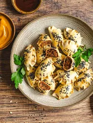 De dumplings moeten alleen zachtjes in water sudderen – laat het water niet koken. Ze kunnen ook worden gestoomd.
