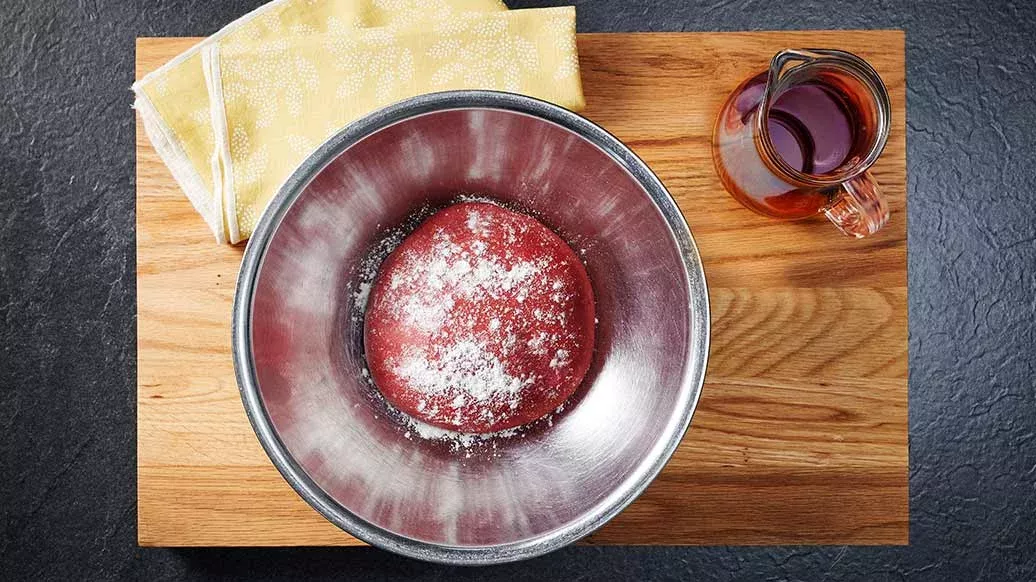 Vorm het deeg in 4 platte hamburgerbroodjes en laat nog 20 minuten rijzen. Verwarm de oven voor op 200°C (180°C indien hete lucht). Bestrijk de hamburgerbroodjes met eiwit, bestrooi met een beetje tijm en bak in de oven voor ongeveer 15-20 minuten. Laat de broodjes afkoelen.